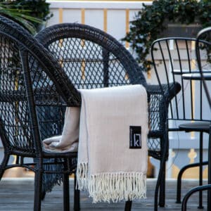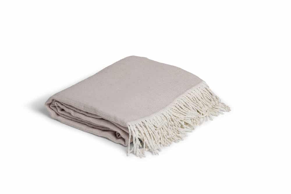 En supertrendig pläd i litet fiskbensmönster och mjuka fransar. Ljuvligt mjuk och följsam.