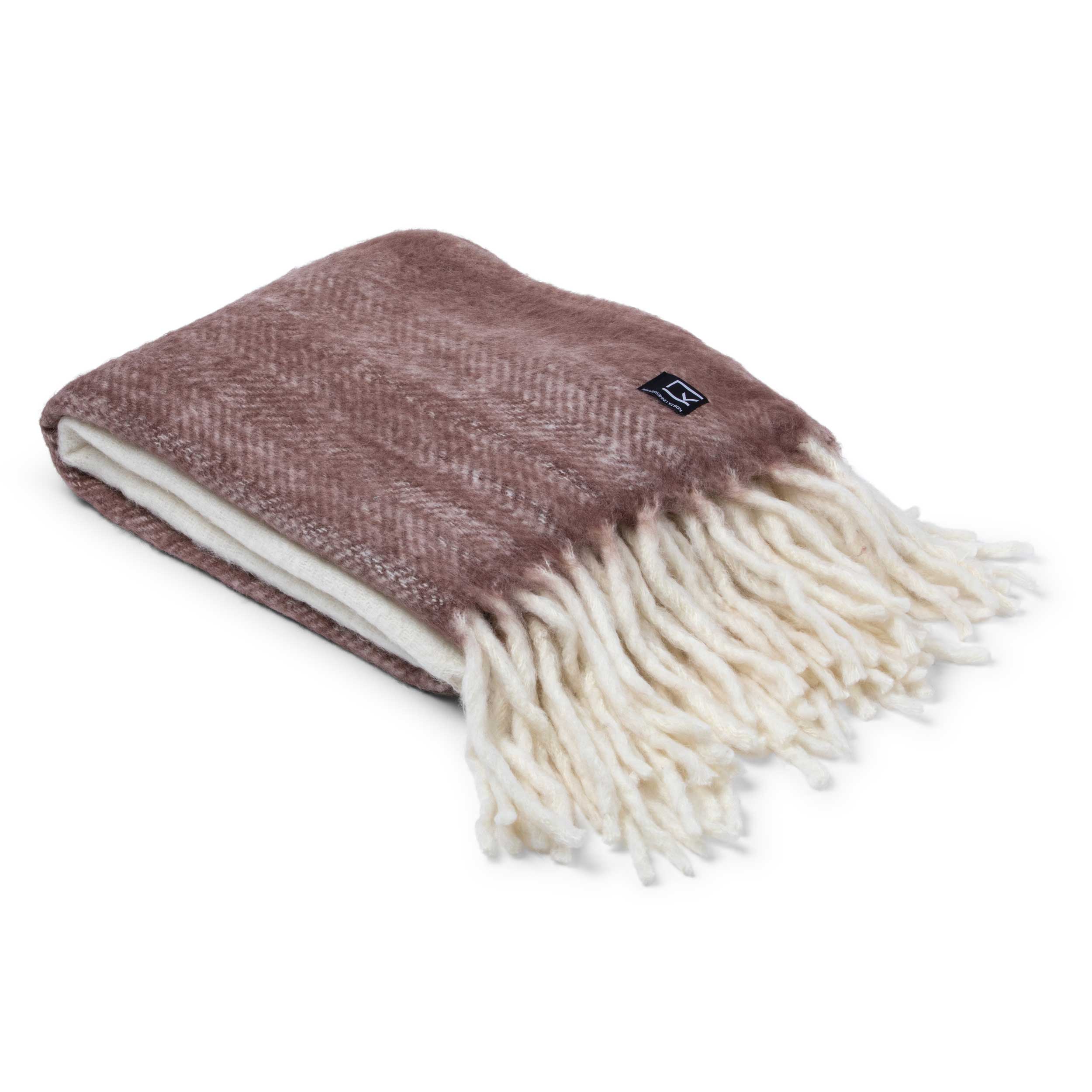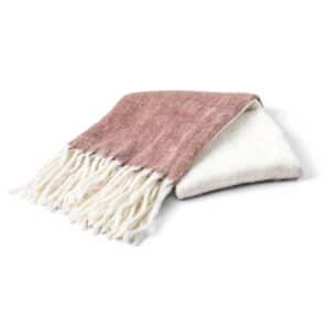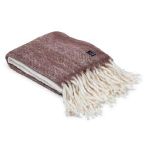 Härligt mjuk ullpläd i vinrött och vitt med långa fransar på kortsidorna. Passar lika bra som inredningsdetalj, svepa om sig en kylig kväll eller ge bort som present.