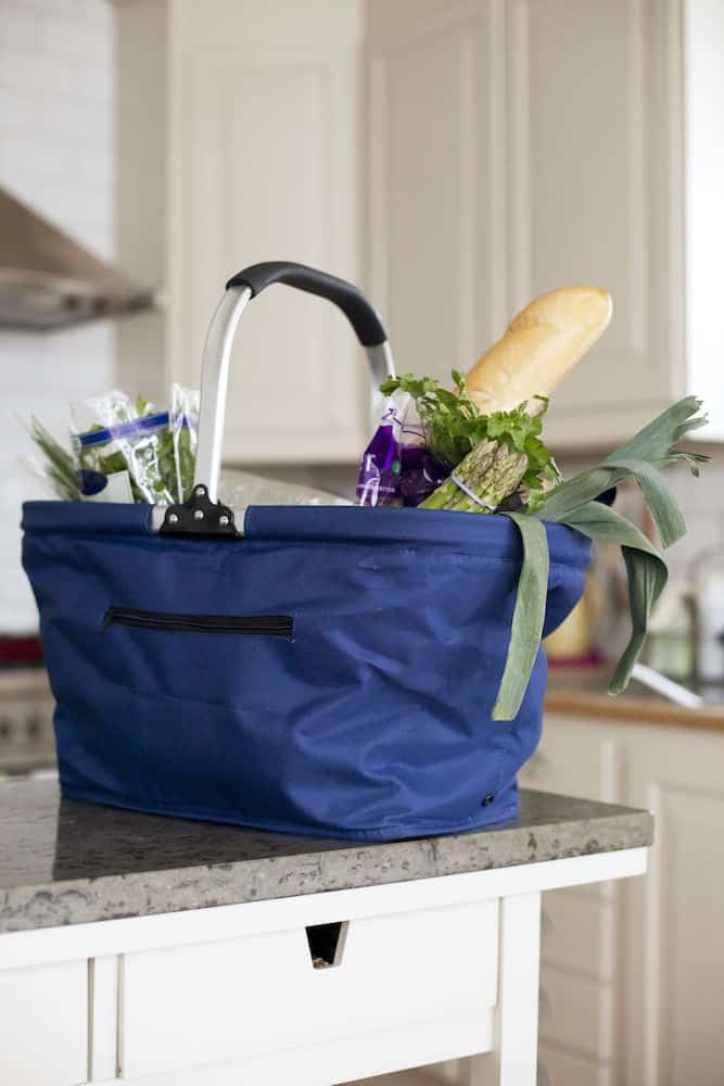 Praktisk hopvikbar blå korg från Queen Anne. Korgen passar perfekt som både picknickkorg och shoppingkorg.